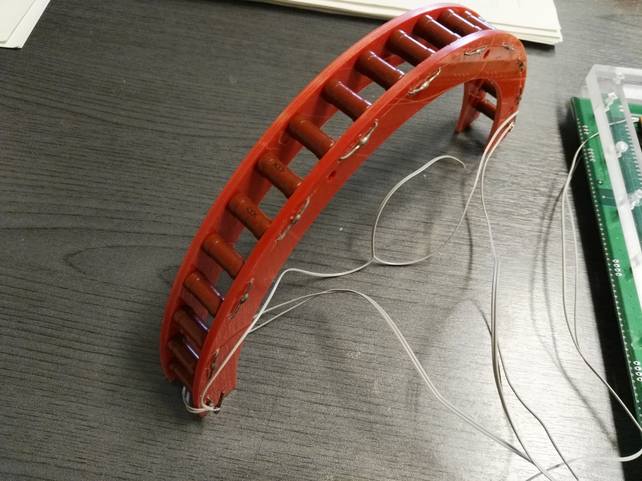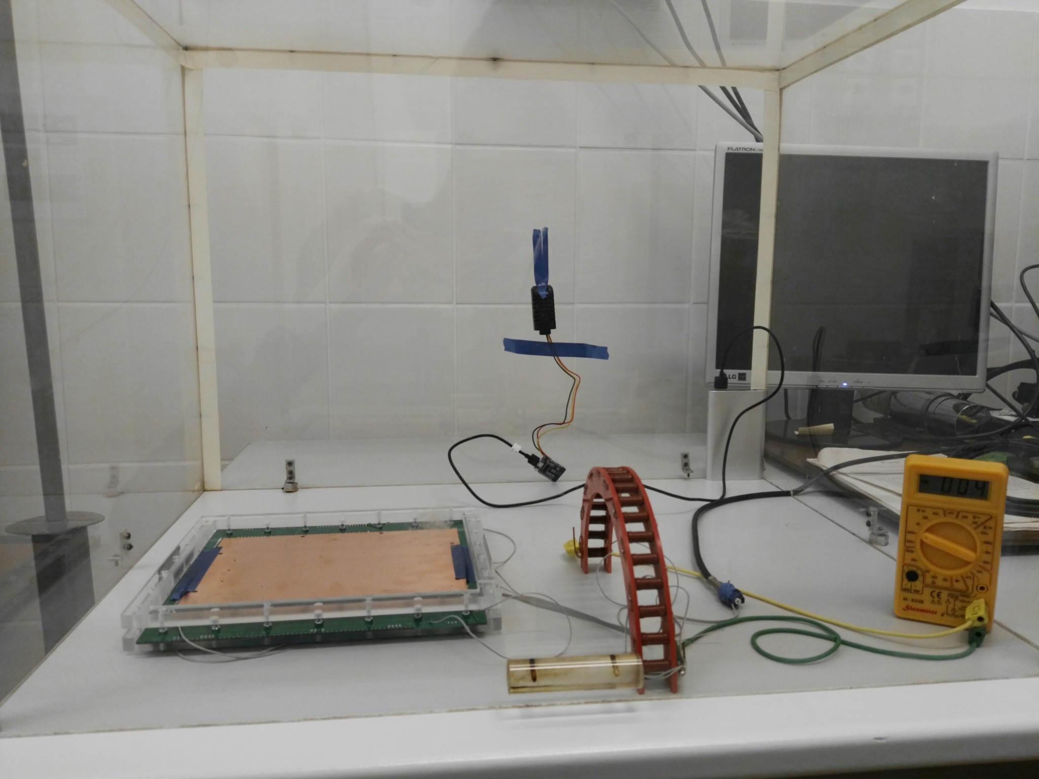 First we built a capacitor, to test, how many particles can we ionize using high voltage wires.